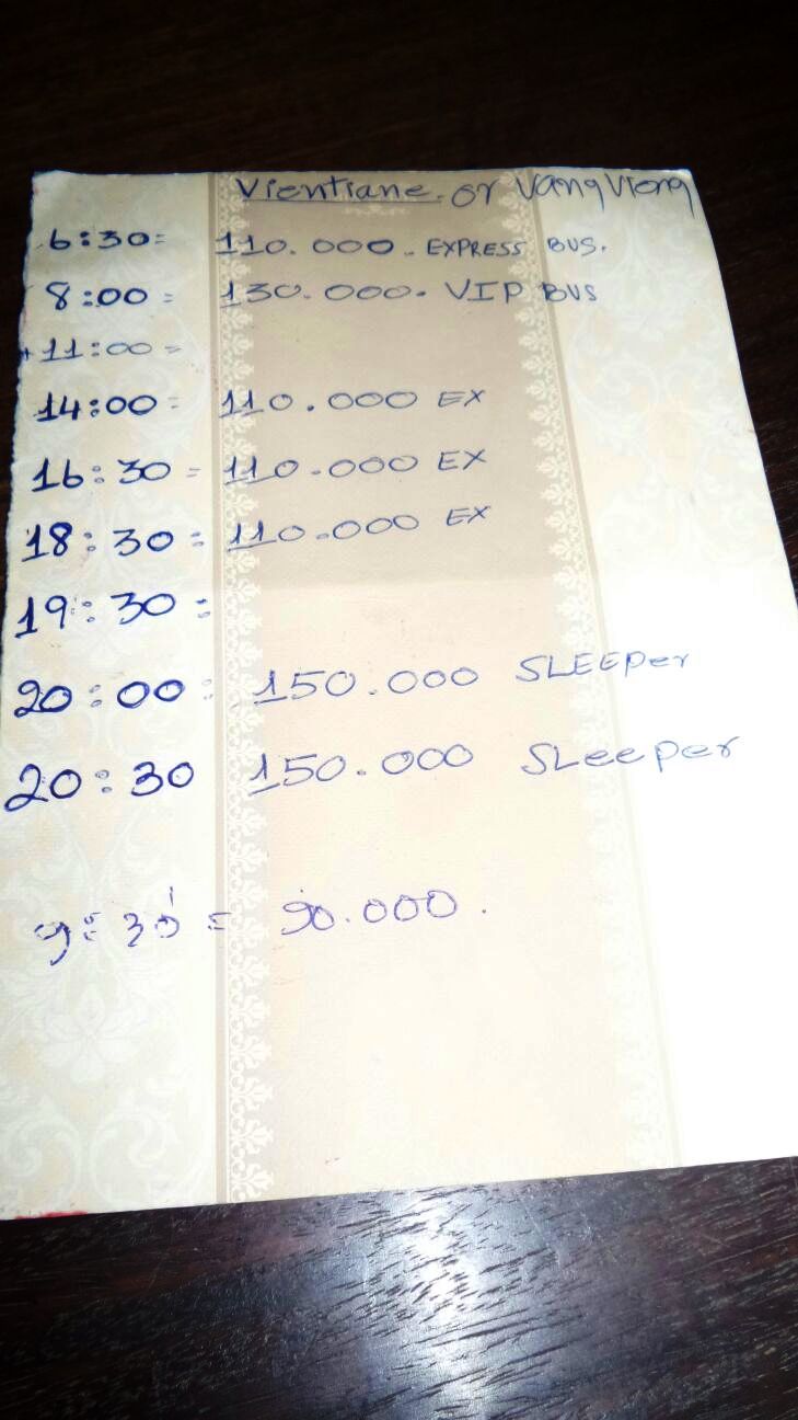 After getting Laos visa, we first went to the central bus station of Vientiane, called Khua Din bus station, by taking the frequent green and white air-conditioned bus #14. You will find this bus waiting just a few meters outside the Laos border office. It took almost 45 min to reach the bus station. From there, we took another bus to the northern bus terminal that was another 20-min journey from there.